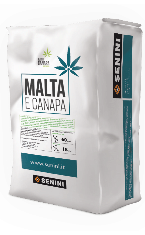 Malta e Canapa è una malta premiscelata in polvere con Canapulo Fine 0-6mm studiata per la costruzione di pareti in Biomattone® di canapa e calce, con ottima lavorabilità, costante uniformità cromatica e con limitata possibilità formazione di efflorescenze saline grazie alle sue proprietà idrofughe nella massa.